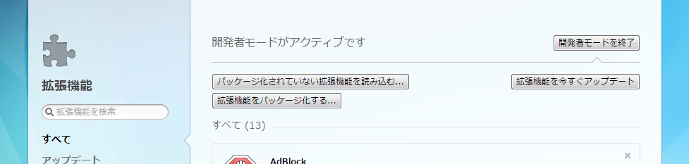 「無効にされました」云々と言われます。「移動」から拡張機能の設定へとびます。